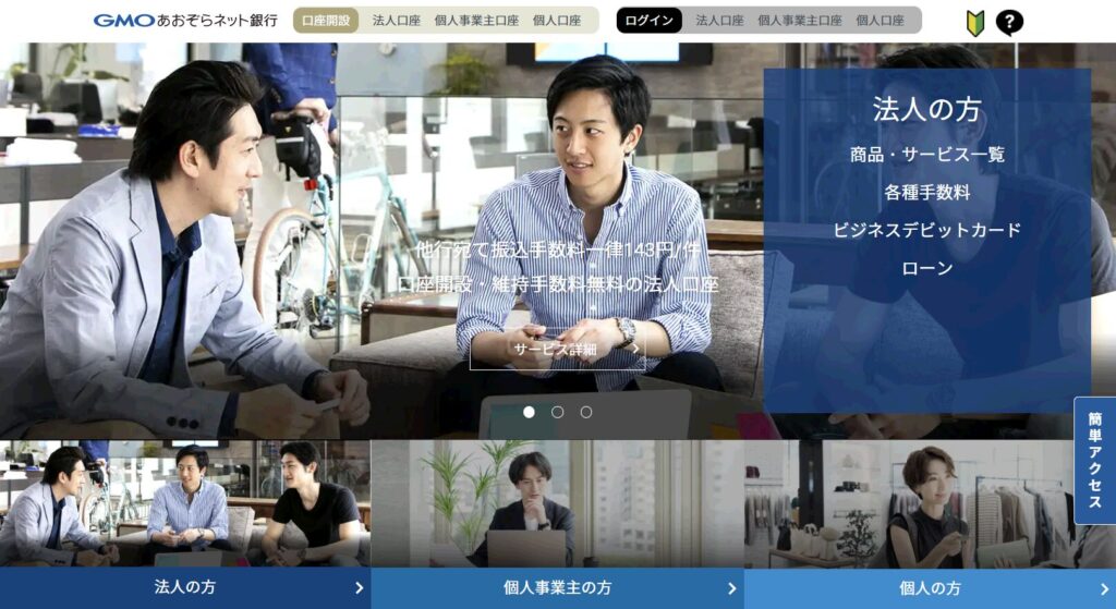 ただし、他行宛の振込手数料は4つの中でやや高め。振込件数が多い法人は、GMOあおぞらや住信SBIと組み合わせて使い分けるのが賢い方法かもしれません。